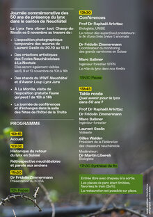 Avenir Loup Lynx Jura souhaite commémorer publiquement cette réussite et cet engagement en organisant le samedi 02 novembre 2024, une journée publique et gratuite dédiée au lynx boréal, célébrant sa réintroduction, valorisant son image et souhaitant garantir sa stabilité et sa durabilité dans nos régions et plus largement.