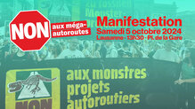 Samedi 5 octobre Manif · NON aux méga-autoroutes ·
