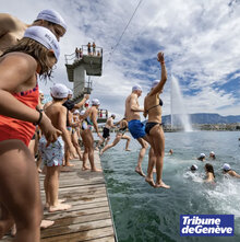 «Pour les rivières, un, deux, trois», lance Julia Nerfin, responsable de la communauté des bénévoles du WWF, afin d’encourager les dizaines de personnes présentes à se jeter dans le lac aux Bains des Pâquis.