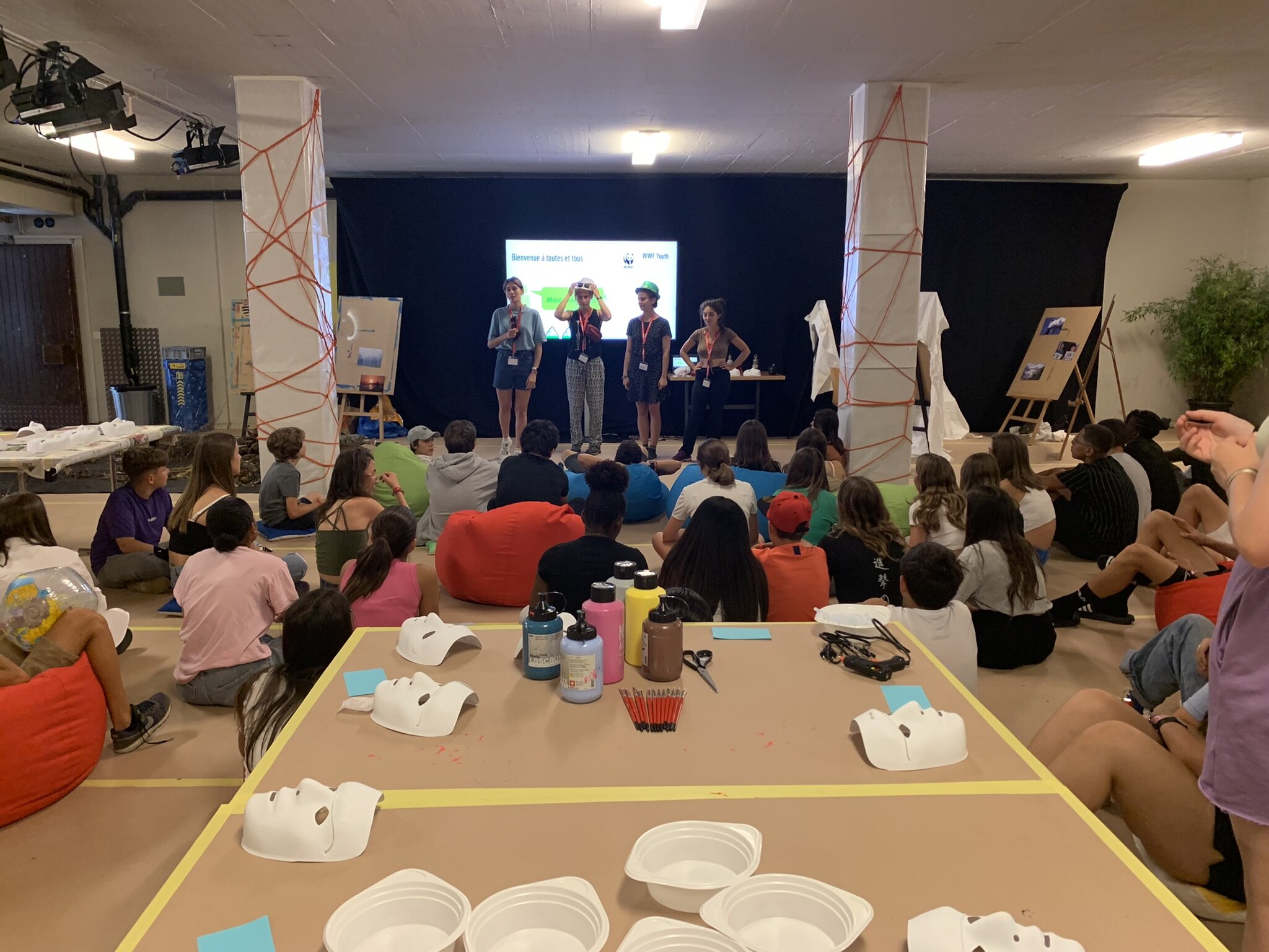 En 2022, 46 adolescent·e·s ont participé à l’atelier créatif organisé par WWF Youth. Laure, Louise, Alexia et Anouk ont parlé de la nature, et ont transmis ce message: pour protéger la nature, il faut l’aimer. Après une présentation de notre programme, elles ont raconté et mis en scène un conte ancien sur les esprits de la nature, puis organisé un atelier de création de masques avec des matériaux naturels trouvés sur le terrain alentour (Landart). Leur masque une fois terminé, les artistes d’un jour étaient invité·e·s dans le «studio photo» organisé pour l'occasion, afin de se faire photographier, avant d’exposer leurs œuvres.