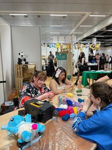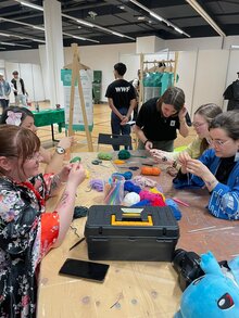 Nous avons animé un stand de sensibilisation pendant les quatres jours de l'édition 2024. Nous avons proposé aux visiteur·trices des ateliers créatifs de couture et d’up-cycling. Nous voulions les encourager à créer eux-mêmes leur déguisement Cosplay à partir de matériaux recyclés, ou leur proposer d'en trouver un de deuxième main plutôt que de l'acheter neuf chaque année.