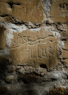 In den Stein sind Namen geritzt. José, Luis – mit schnellen, groben Bewegungen eingraviert. Keine Botschaft, eher ein Beweis: Jemand war hier.